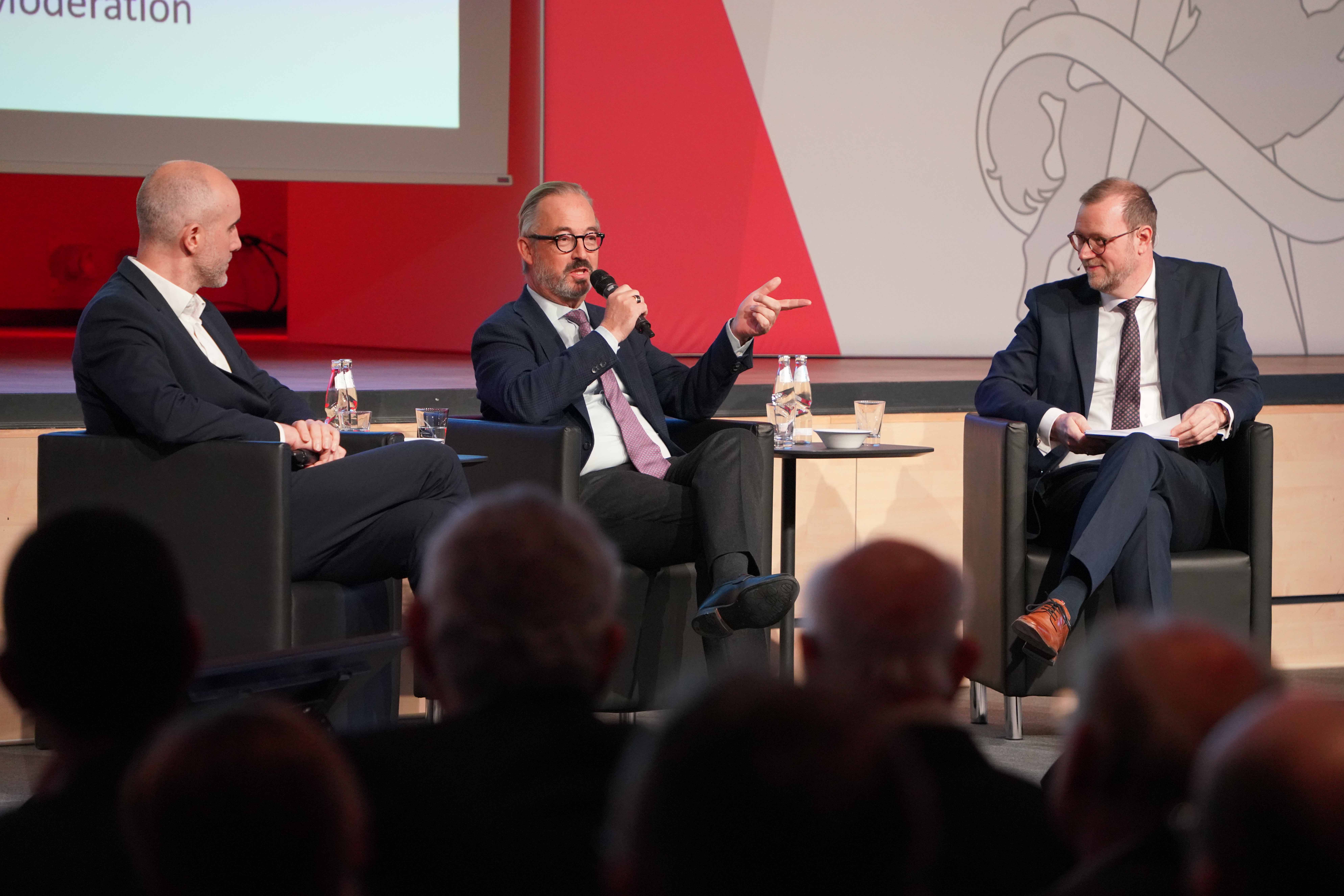 Im Mittelpunkt: eine Diskussion zu wirtschaftlichen Herausforderungen mit Hannovers Oberbürgermeister Belit Onay und Focus-Kolumnist Jan Fleischhauer.