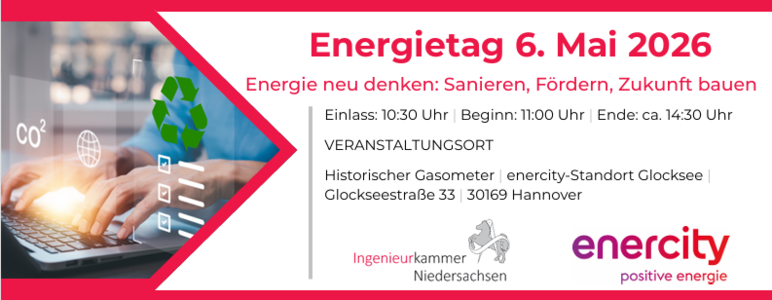 Die Ingenieurkammer Niedersachsen lädt zum Energietag am 6. Mai 2026 ein.