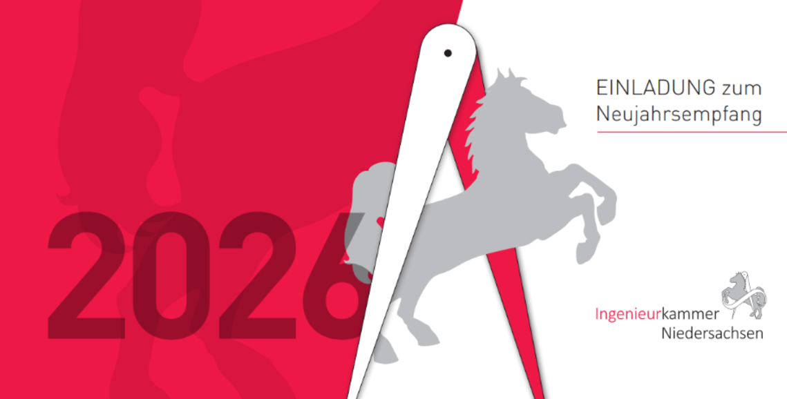 Die Ingenieurkammer Niedersachsen lädt Sie herzlich zum Neujahrsempfang ein. Melden Sie sich auf dieser Seite an und erfahren Sie mehr zum besonderen Programm mit Gästen aus Politik und Medien.